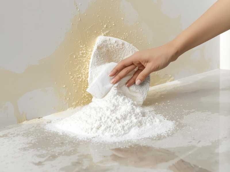 After blotting with paper towel, sprinkle powder directly onto the stains. The powder absorbs remaining liquid over the next 15 minutes. Brush off the soda with a dry cloth, then follow up with your regular cleaning method using warm water and dish soap to get grime completely out of the paint.