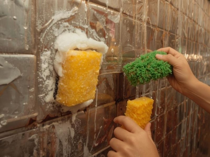 After soaking, use a soft sponge or brush to scrub the loosened buildup gently. You may need to scrub and repeat the process for particularly stubborn areas to fully clean the surface. In homes where extractor fans are rarely used, deposits can become noticeably thicker within six to eight weeks of regular use. These cases benefit from monthly sessions where you work and clean thoroughly.